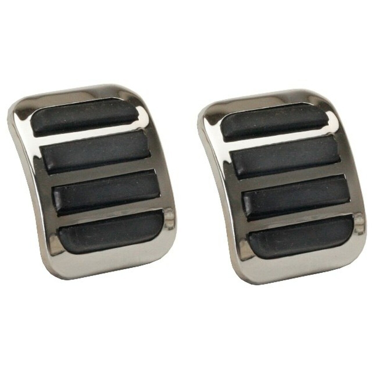 EMPI Custom Chrome & Rubber Brake & Clutch Pedal Pads fit over the stock brake and clutch pedal pads with a chrome cover that is held by tabs on the back side. A rubber insert sits inside the cover to prevent slipping. The brake and clutch pedal pads fit 1955 through 1977 Beetles, 1971 through 1979 Super Beetles, 1956 through 1974 Karmann Ghias, 1955 through 1967 Type 2 Bus Models, 1962 through 1973 Type 3s and 1973 through 1974 Things.