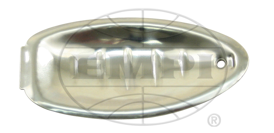 The EMPI Stainless Steel Door Handle Guards install behind the door handles in 1956 through 1959 VW Beetles. The door handle guards help protect the cup behind the handle from getting scratched by finger nails and fingers reaching in to open the door and are sold as a pair. As the early handles do not have a front mount, a dab of silicone at the front edge can help in securing the guards to the door.