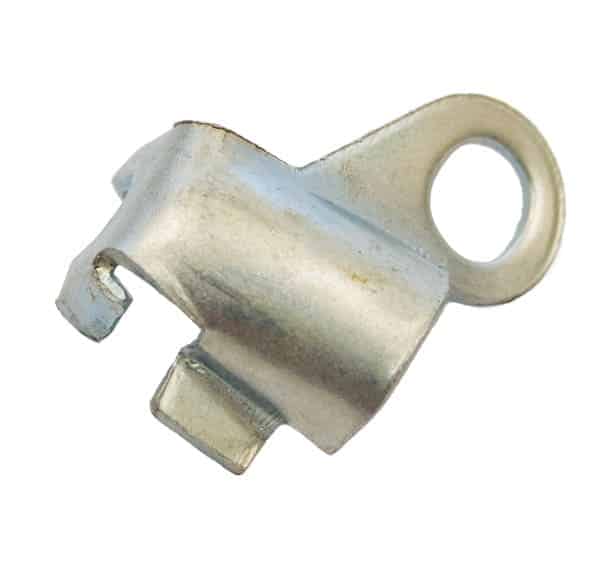 Parking Brake Cable Bracket fits the right side of 1954 through 1958 Beetles & Ghias. It fits the left side for: Standard Beetle 1958-1977, Super Beetle 1971-1979, Karmann Ghia 1958-1974, Type 3 1962-1973, Thing 1973-1974. The parking brake cable bracket is bolted to the backing plate and holds the emergency brake cable in place.
