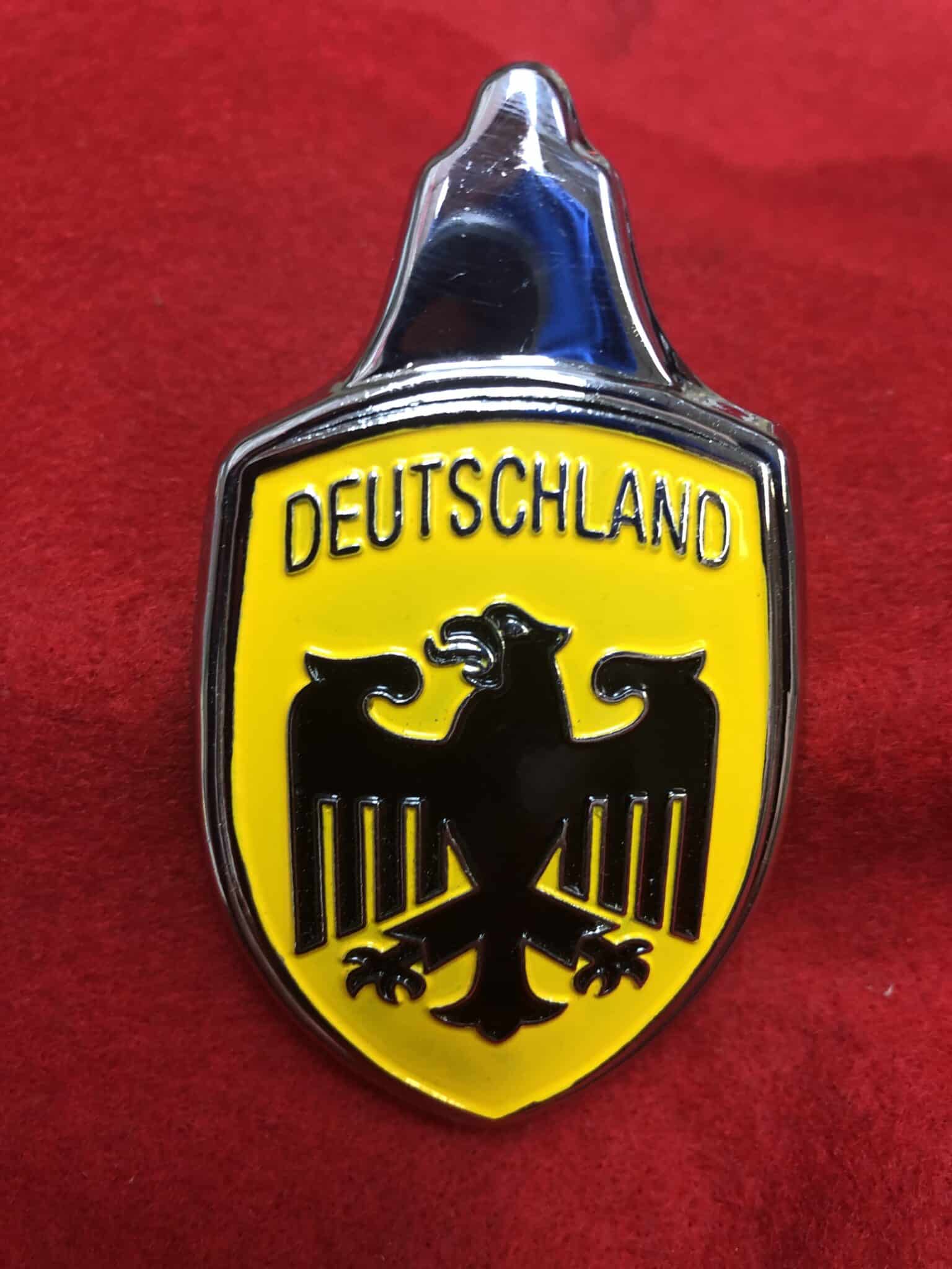 Volkswagen VW German Deutschland Hood Badge Crest. Made from a cast alloy metal and then painted to bring out the details. Can be mounted on hood, grille or just about anywhere you like. Unit included mounting tabs for tight fit.
