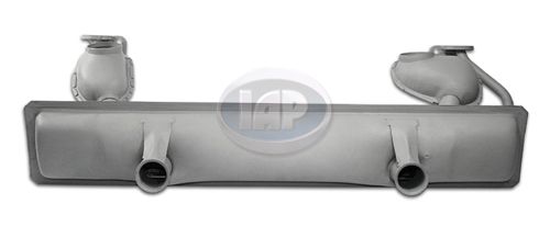 Replacement muffler fits 1966 to 1973 VW Beetles and Karmann Ghia and has single pre-heat tubes per side. The muffler is made in Europe and comes painted with a grey primer that will burn off in time.