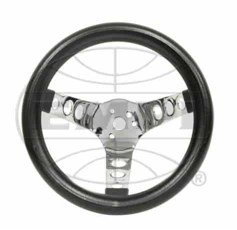 Featuring a thick, textured black Poly-Foam grip with Chrome spokes and is available in a range of sizes. Standard 3-Bolt mounting pattern for use with Steering Wheel Adapters, Quick Disconnects (P/N 3172 & P/N 16-9567) or Steering Shafts (P/N 3177 & P/N 17-2579). Note: Does not come with Horn Button sold in Adapter Kit.